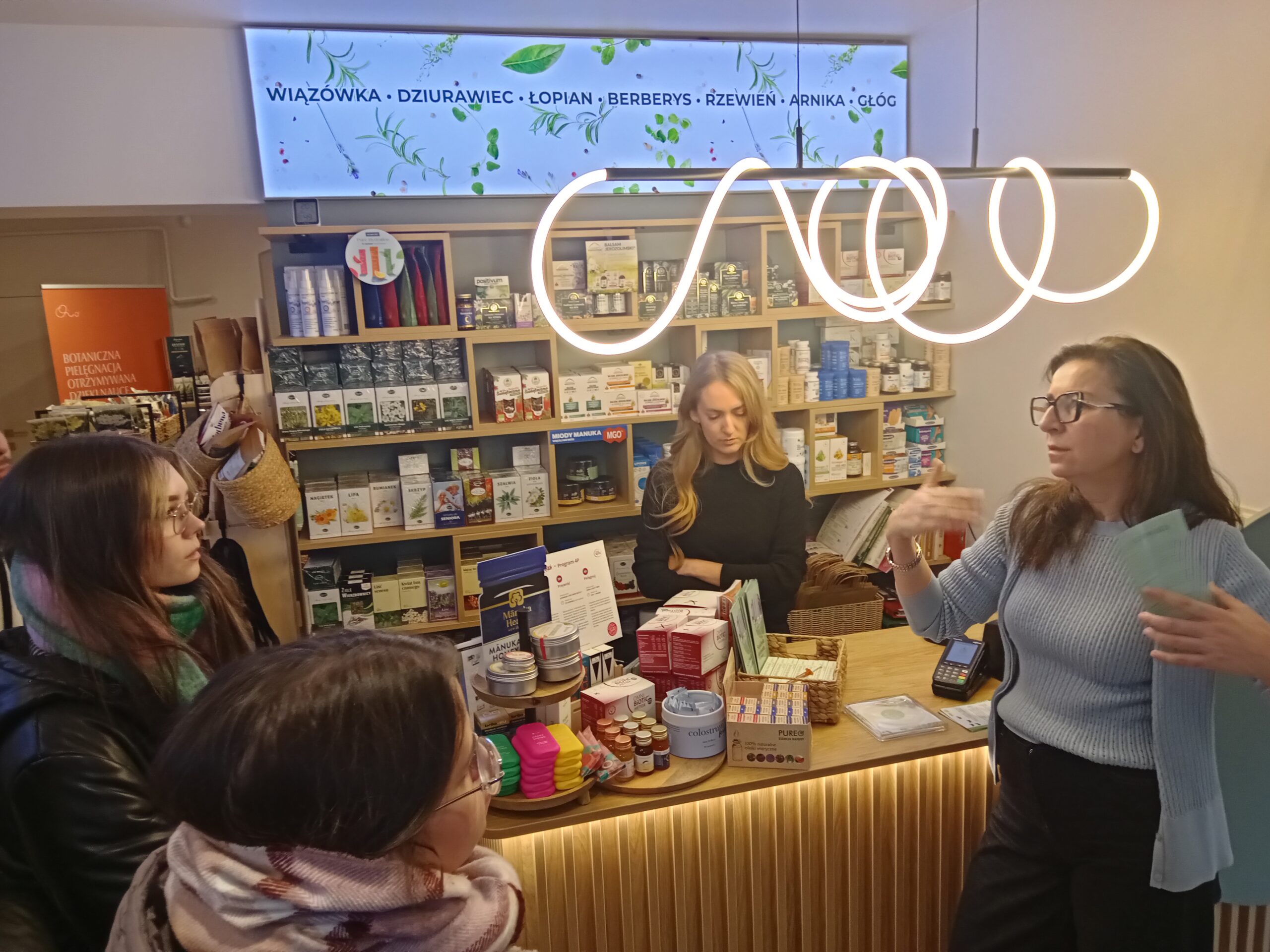 – w Sklepie zielarsko-medycznym poszerzyli wiedzę z zakresu leku roślinnego i naturalnego oraz poznali jego w lecznictwie.