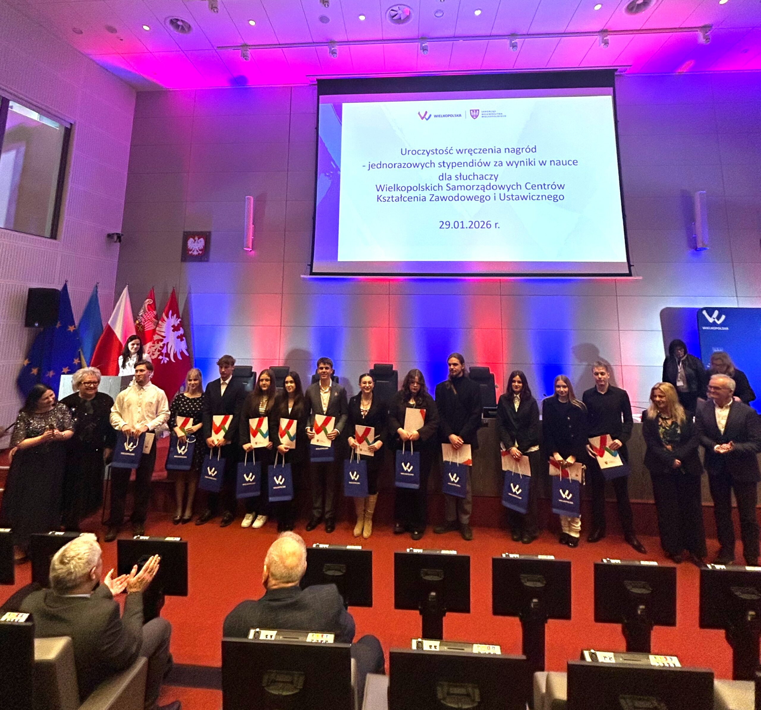 W dniu 29 stycznia br. odbyła się uroczystość wręczenia jednorazowych stypendiów Marszałka Województwa Wielkopolskiego za wyniki w nauce słuchaczom Wielkopolskich Samorządowych Centrów Kształcenia Zawodowego i Ustawicznego.