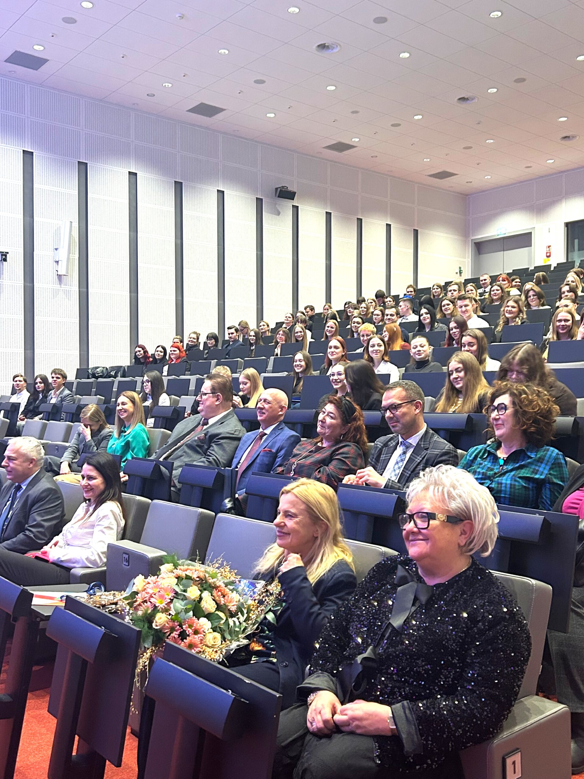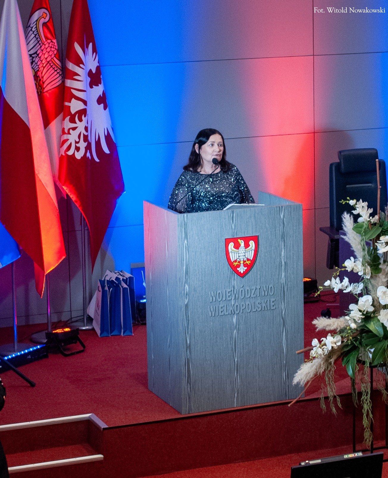 Stypendia oraz nagrody wręczali: Członkini Zarządu Województwa Wielkopolskiego Pani Katarzyna Kretkowska, Dyrektor Departamentu Edukacji i Nauki Urzędu Marszałkowskiego Województwa Wielkopolskiego Pani Dorota Kinal oraz Radny Sejmiku Województwa Wielkopolskiego Pan Marek Sowa.
