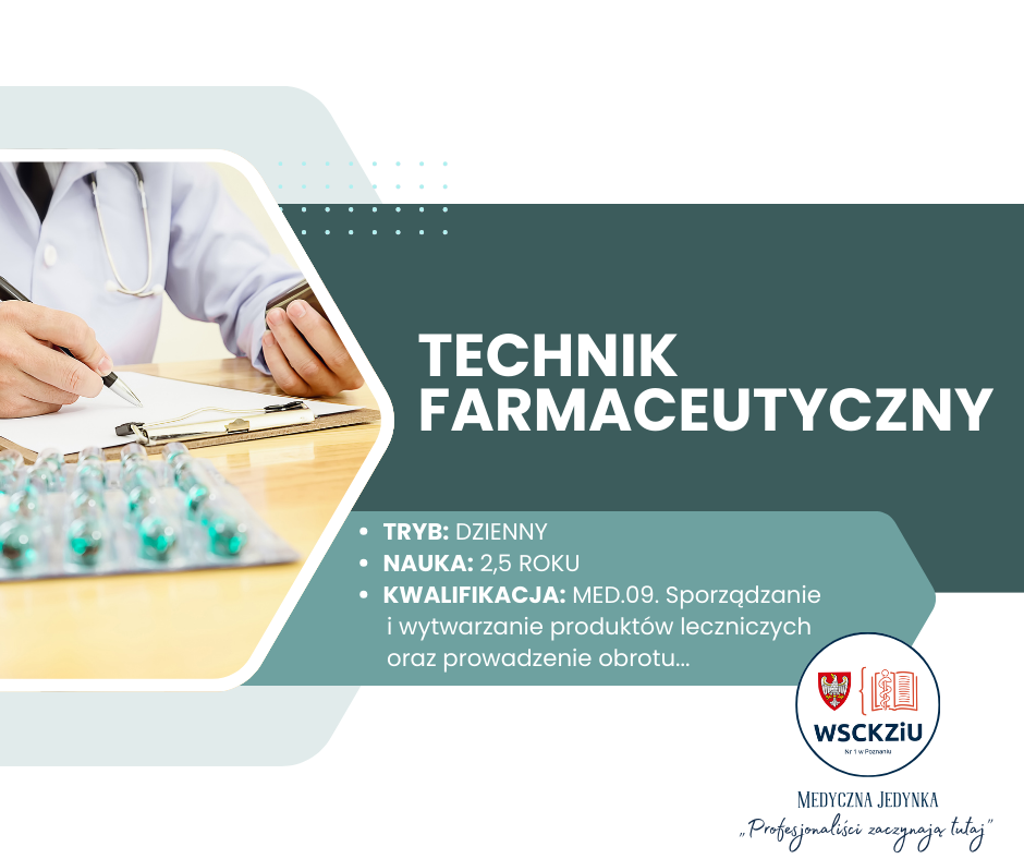 Kwalifikacja: MED.09. Sporządzanie i wytwarzanie produktów leczniczych oraz prowadzenie obrotu produktami leczniczymi, wyrobami medycznymi, suplementami diety i środkami spożywczymi specjalnego przeznaczenia żywieniowego oraz innymi produktami dopuszczonymi do obrotu w aptece na podstawie przepisów prawa