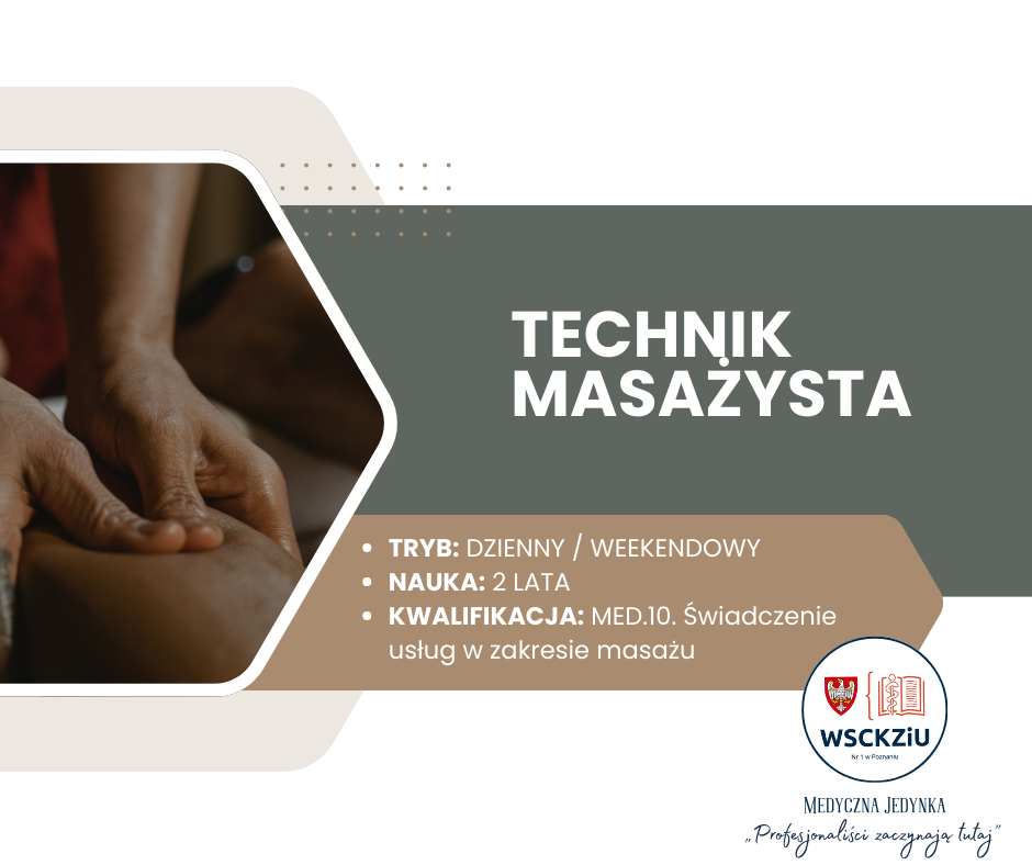 Absolwent szkoły prowadzącej kształcenie w zawodzie technik masażysta jest przygotowany do wykonywania zadań zawodowych:
